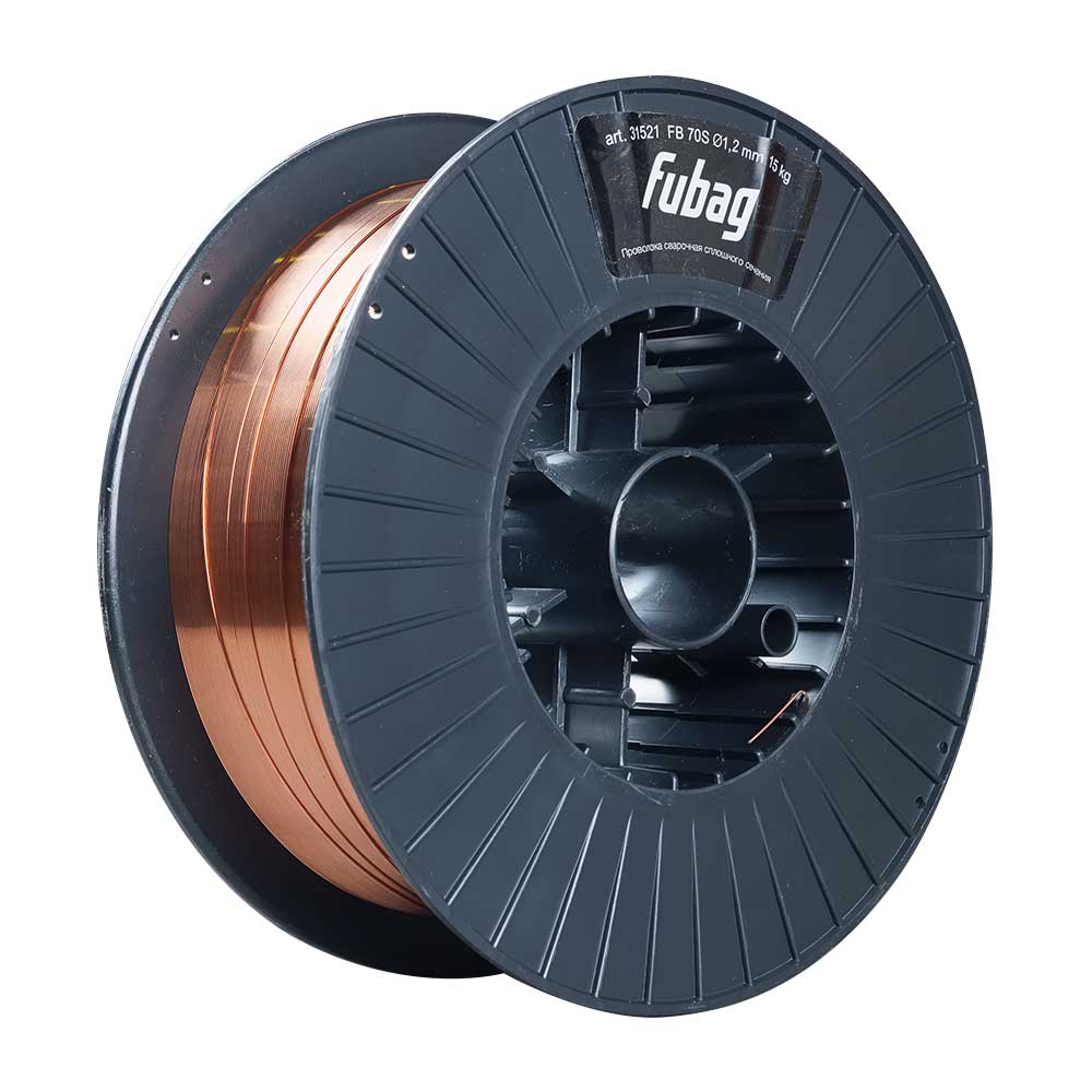 Проволока сварочная FB 70S 1.2 мм является высококачественным расходным материалом для сварки конструкций из низкоуглеродистых и низколегированных сталей с пределом текучести до 440 МПа. Эта сварочная проволока сплошного сечения обладает отличными сварочно-технологическими характеристиками и может использоваться при сварке в различных пространственных положениях переменным и постоянным током прямой и обратной полярности. Вы можете заказать проволоку сварочную сплошного сечения FB 70S 1.2 мм с доставкой в Новокузнецке.Основные преимущества FUBAG проволоки сварочной сплошного сечения FB 70S 1.2 мм