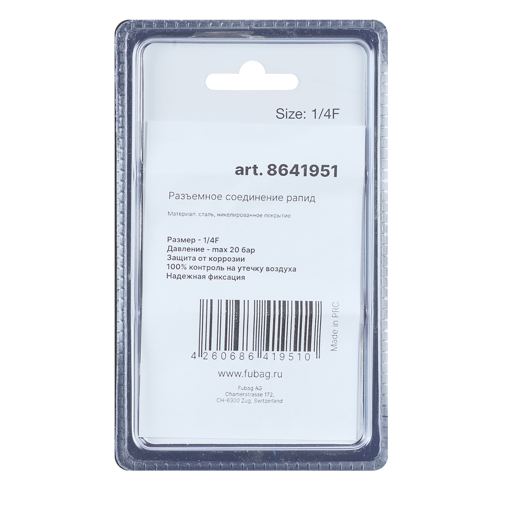Отзывы о FUBAG Разъемное соединение рапид (муфта), 1/4 дюйма F, внутр. резьба, блистер 1 шт